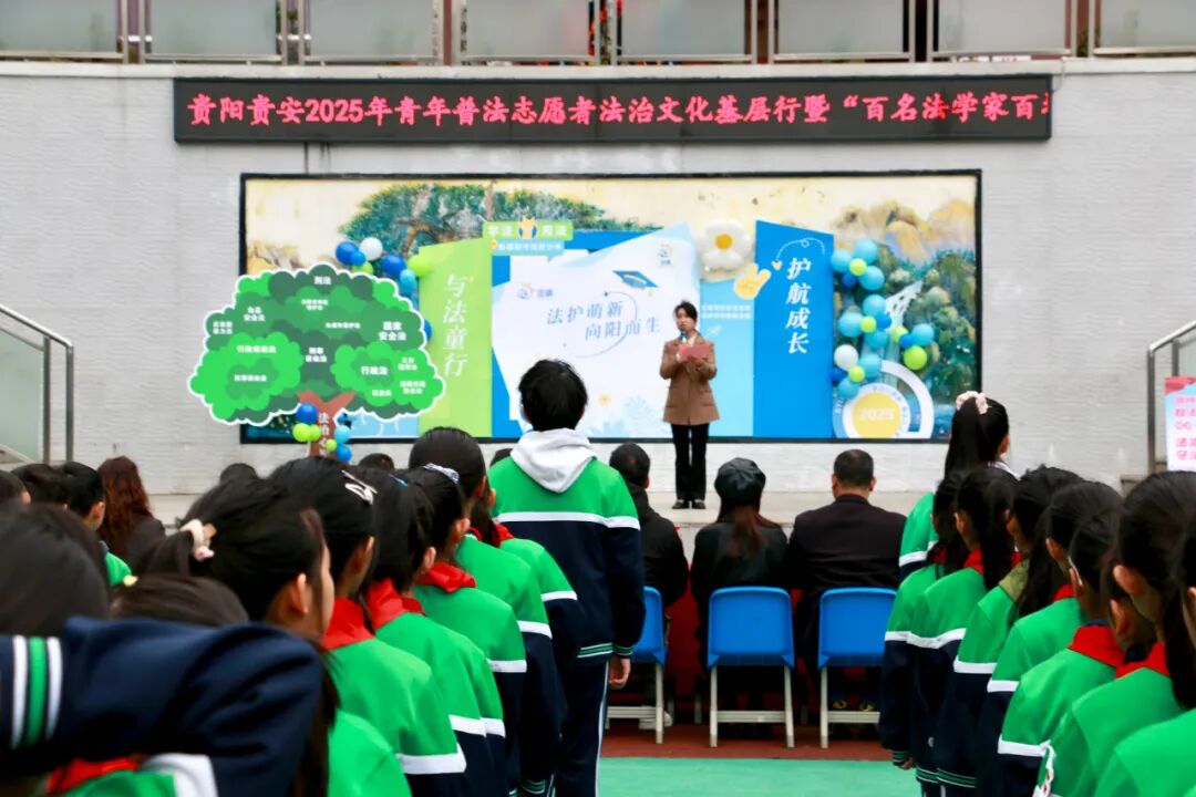 10月22日,贵阳贵安2025年青年普法志愿者法治文化基层行暨“百名法学家百场报告会”走进乌当区。一场主题为“法护萌新·向阳而生”的校园普法活动,在乌当区实验小学开展。活动通过“课程讲授+互动实践”模式,让同学们在欢声笑语中解锁满满的法治“干货”。