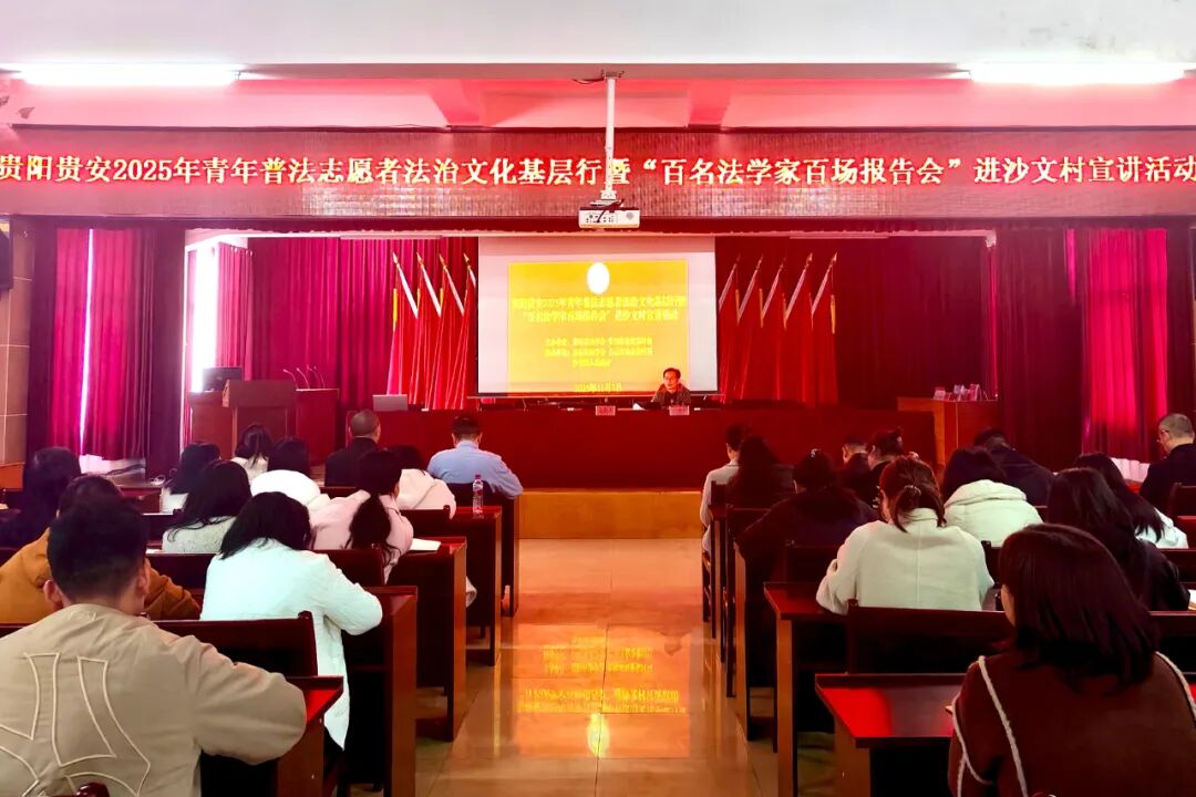 11月7日,贵阳贵安2025年青年普法志愿者法治文化基层行暨“百名法学家百场报告会”走进沙文村开展宣讲活动。本次活动由市法学会联合贵阳市农业农村局主办,白云区法学会、白云区农业农村局、沙文镇人民政府共同协办。
