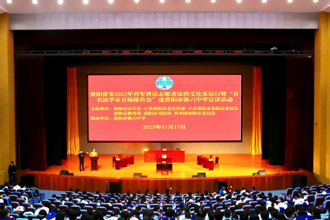 11月 17 日,贵阳贵安 2025 年青年普法志愿者法治文化基层行暨 “百名法学家百场报告会” 宣讲活动走进贵阳市第六中学白云校区,为师生带来一堂生动法治宣传教育课。
