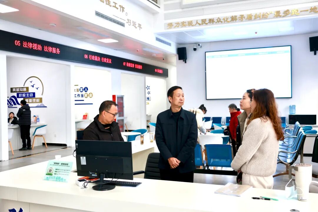在修文县综治中心,阳俊实地察看法学会服务站办公场所,现场了解法律咨询、纠纷调解、信息平台运转等情况,与入驻法学会工作人员深入交流,共同研究规范化建设工作。强调要切实履行职能职责,统筹法学法律专家、法学会会员进驻法学会服务站,注重发挥法学咨询专家联系乡镇(街道)重要作用,集中专业力量为群众提供法律咨询、法律服务,助力提升矛盾纠纷预防化解和社会治理法治化水平。