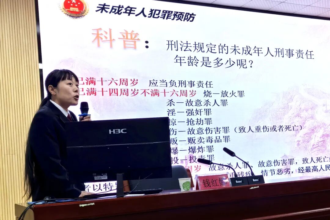 宣讲现场,贵阳市检察院检察官助理钱红娜以“预防未成年人犯罪与未成年人保护”为主题,结合《中华人民共和国预防未成年人犯罪法》相关条款,围绕刑事责任年龄、预防未成年人犯罪、预防未成年人被侵害三个方面进行讲解,引导学生正确择友、学会勇敢面对问题,在遭受不法侵害时要学会用法律武器保护自己。