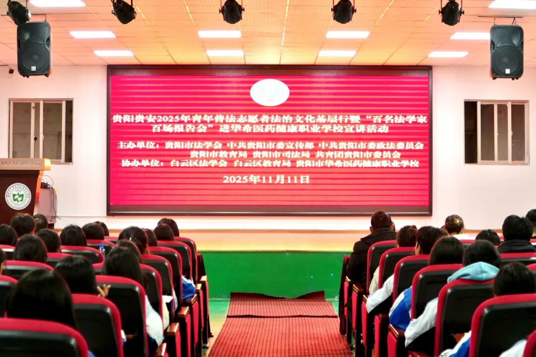 近日,贵阳贵安2025年青年普法志愿者法治文化基层行暨“百名法学家百场报告会”走进贵阳市华希医药健康职业学校开展宣讲活动。