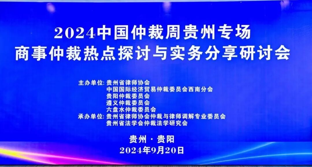 为纪念《仲裁法》颁布实施三十周年,促进商事仲裁理论与实务的互动交流,9月20日下午,“2024中国仲裁周贵州专场商事仲裁热点探讨与实务分享研讨会”在贵阳成功举办。本次研讨会由贵州省律师协会、中国国际经济贸易仲裁委员会西南分会、贵阳仲裁委员会、遵义仲裁委员会、六盘水仲裁委员会联合主办,贵州省律师协会仲裁与律师调解专业委员会、贵州省法学会仲裁法学研究会联合承办。